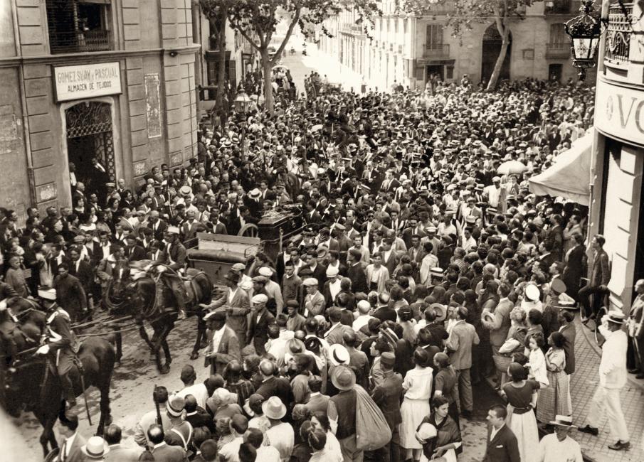 Comitiva fúnebre del pintor Sorolla a su paso por la calle de su nombre