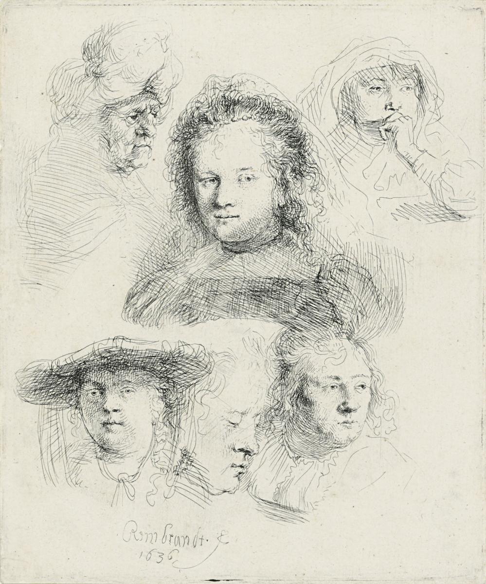Cinco estudios de cabeza de Saskia y uno de mujer anciana