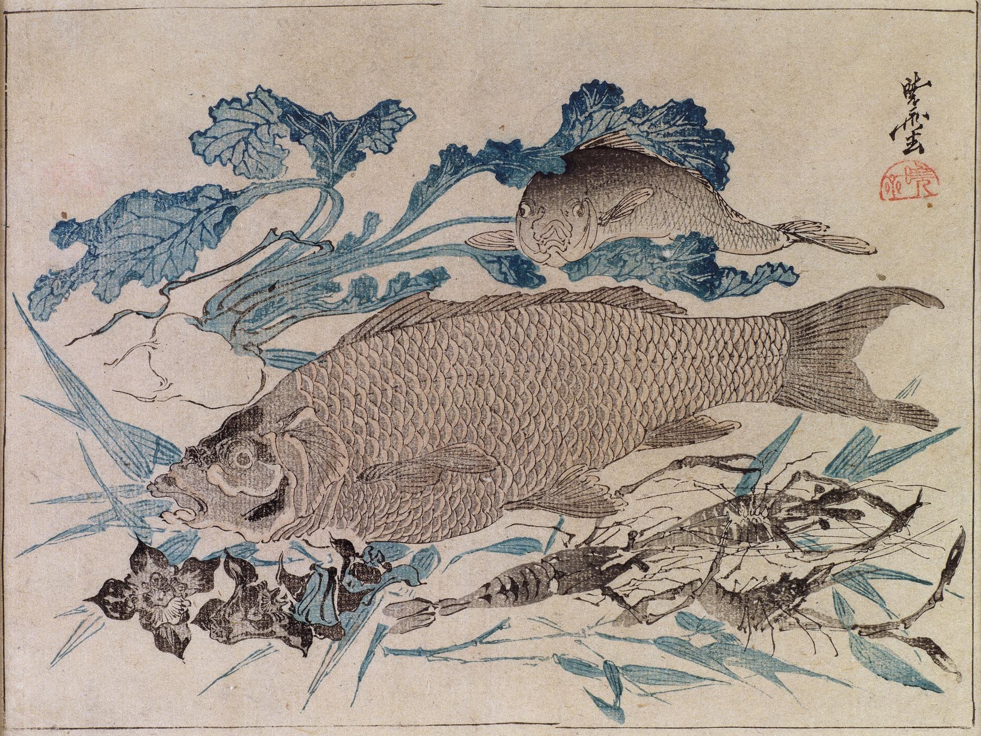 Museoteca - Fish, crayfish and flowers, Kyôsai, Kawanabe