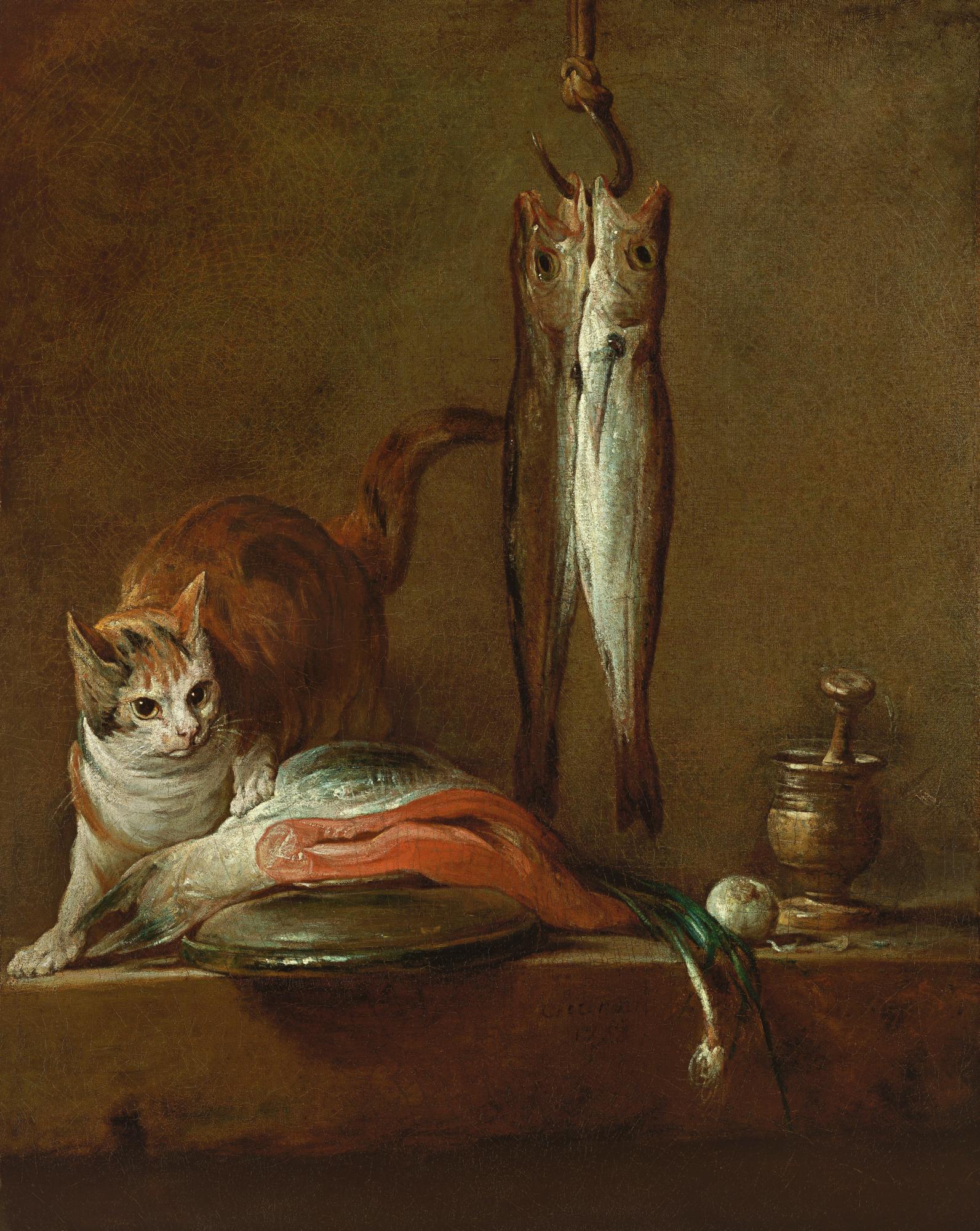 Museoteca - Still Life With Cat and Fish, Chardin, Jean Baptiste Siméon