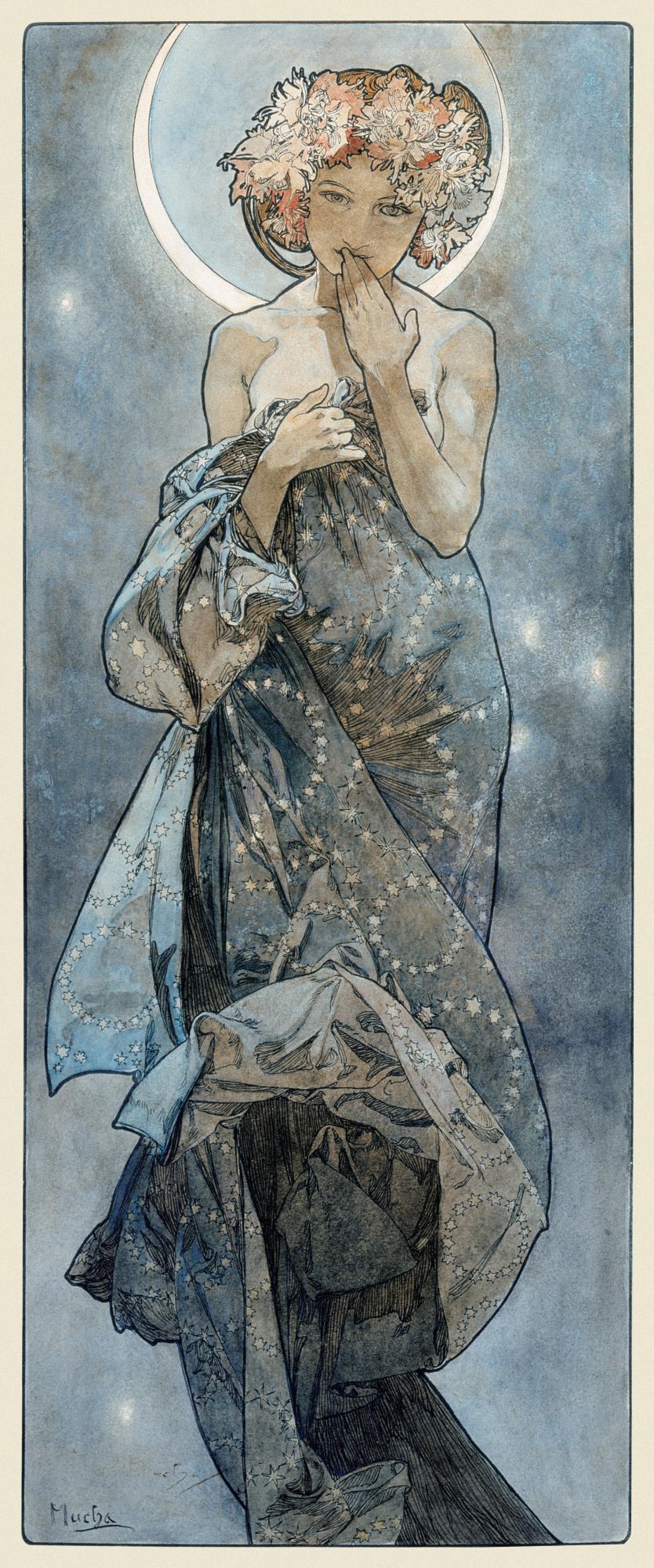 Museoteca - The Moon and the Stars: study for 'The Moon', Mucha, Alphonse