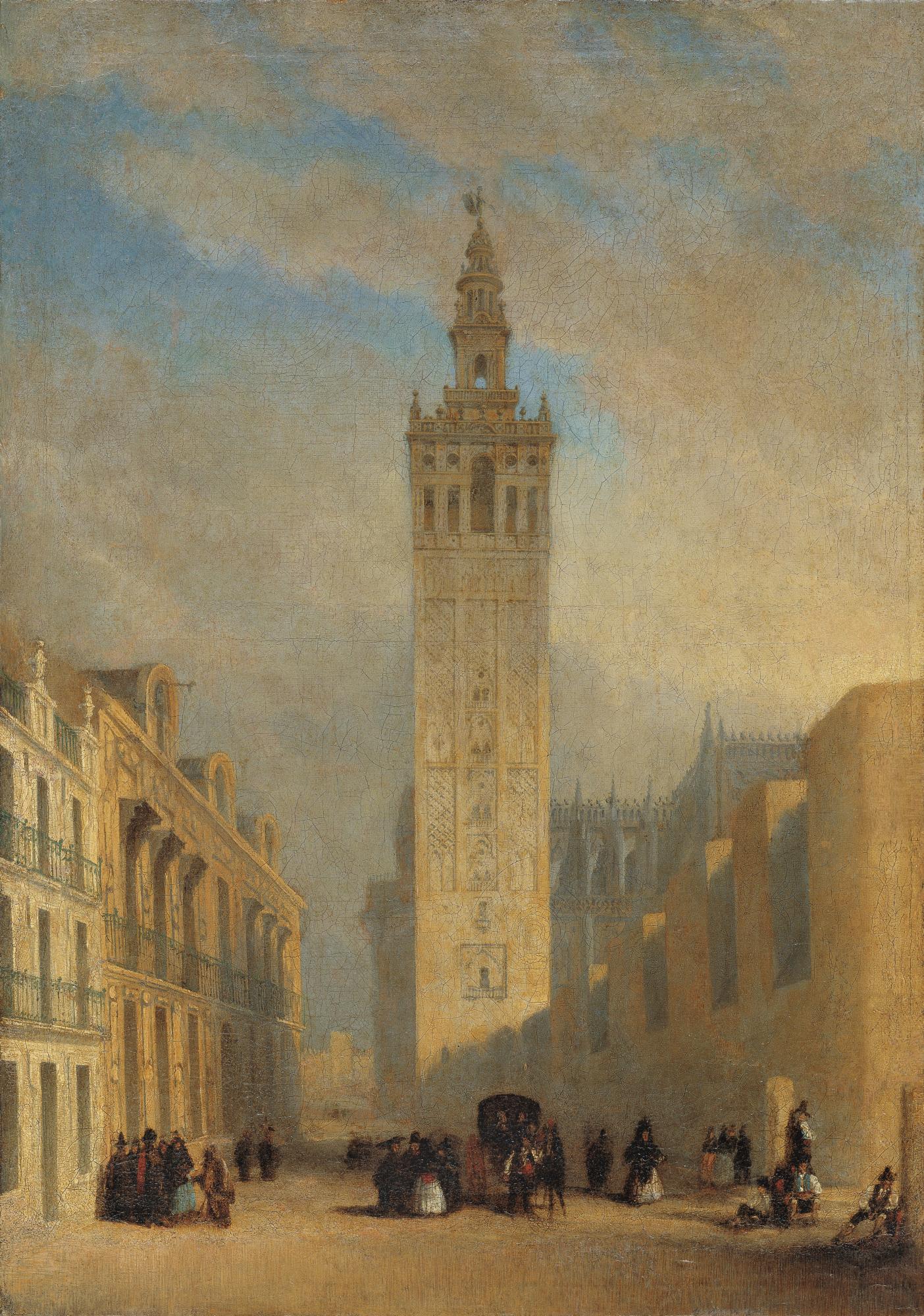Many Romantic artists painted the Giralda from different viewpoints, always with its surrounding buildings and streets populated with passers-by. These figures are depicted with a picturesque exoticism that was largely encouraged by the French and English travellers, both painters and writers, who visited Seville in the first decades of the 19th century.