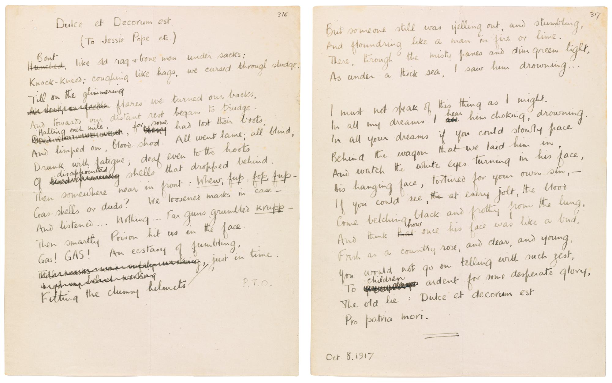 Wilfred Owen archive Box 2, fols. 316-317