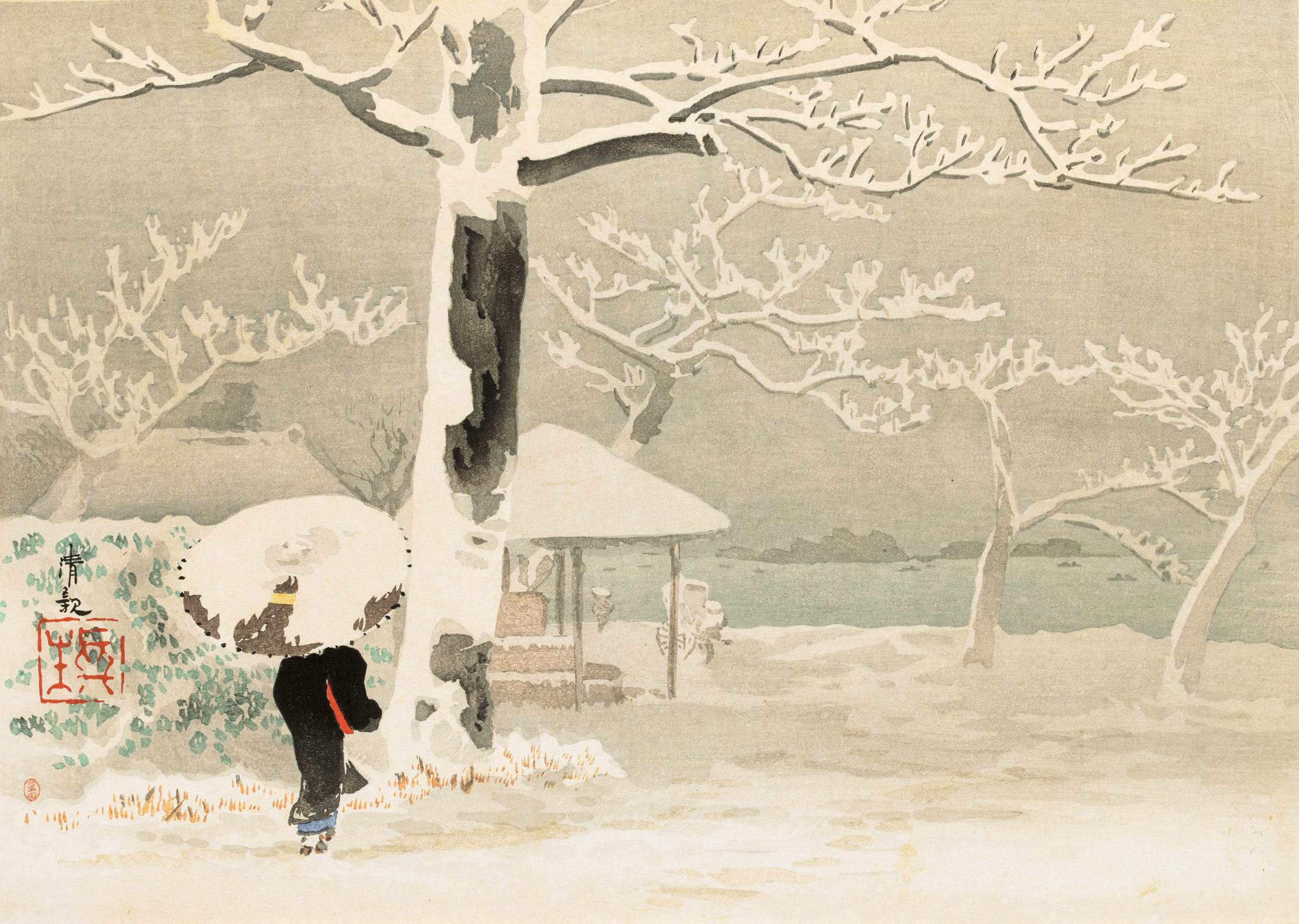 Museoteca - Femme de dos dans un paysage de neige, 1847-1915, Kobayashi Kiyochika