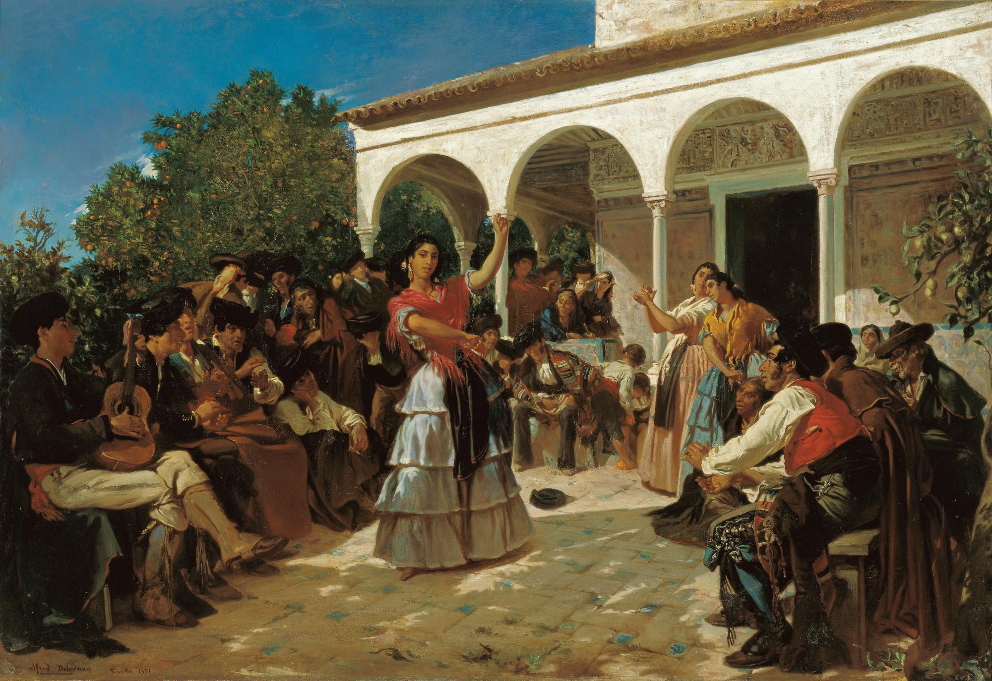 Museoteca - Un baile de gitanos en los jardines del Alcázar, delante del pabellón de Carlos V, Dehodencq, Alfred