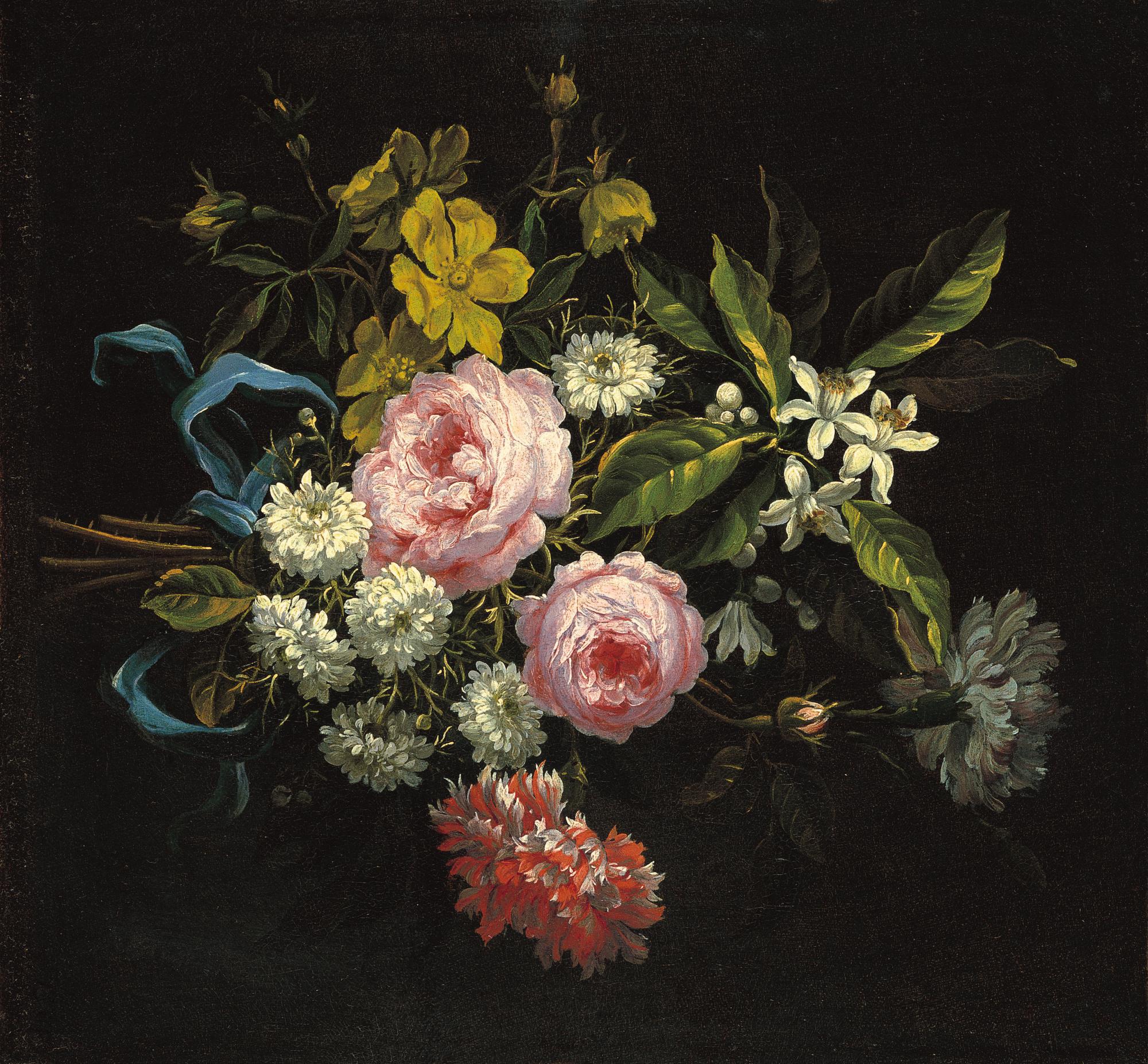 Museoteca - Ramo compuesto por manzanilla, rosas francesas y otras flores, Monnoyer, Jean-Baptiste