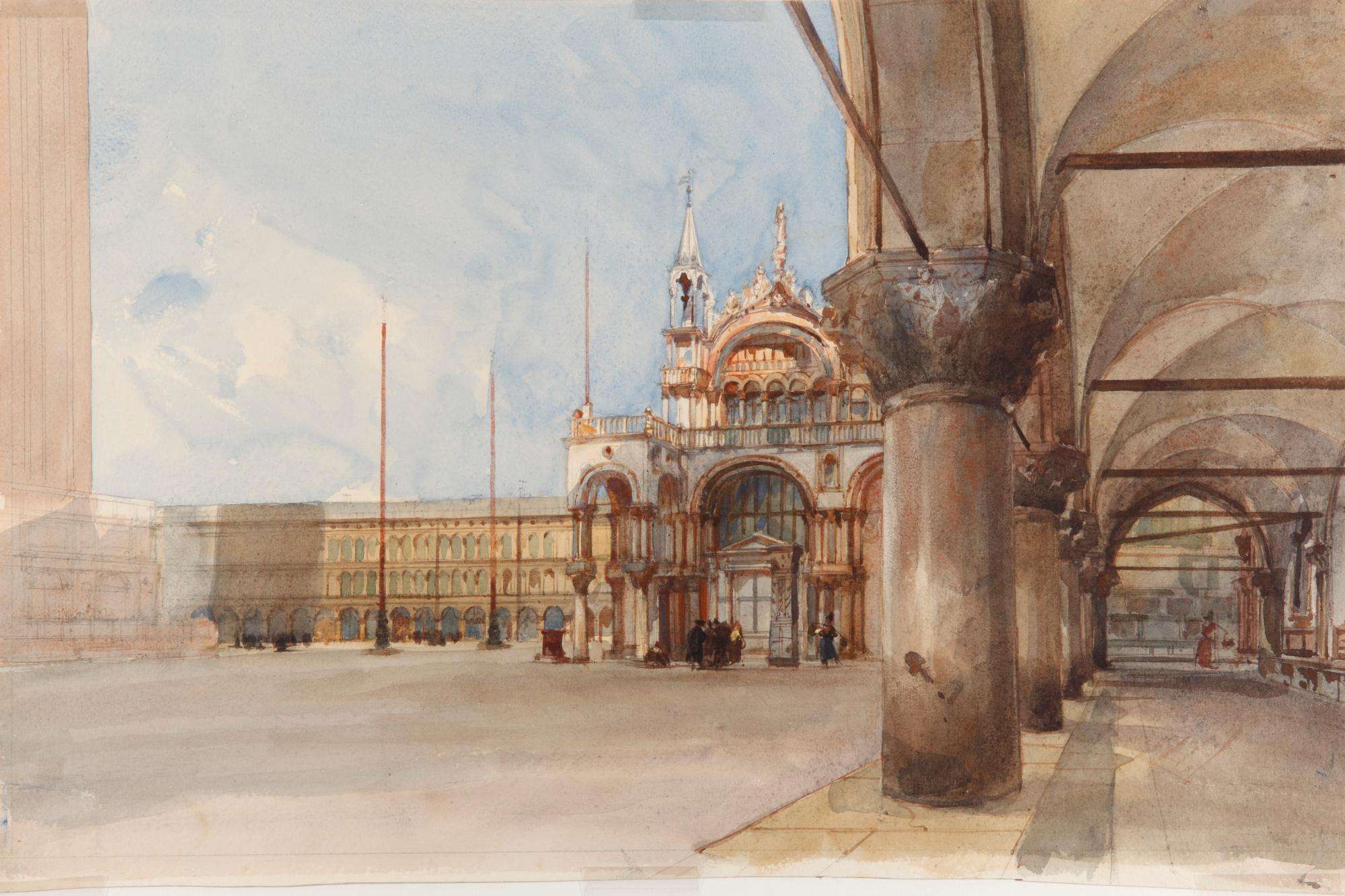 Dibujo realizado por Eugenio Lucas durante su estancia en Venecia, etapa final de un viaje realizado durante el verano de 1868 por la costa mediterránea de Francia, Mónaco e Italia.