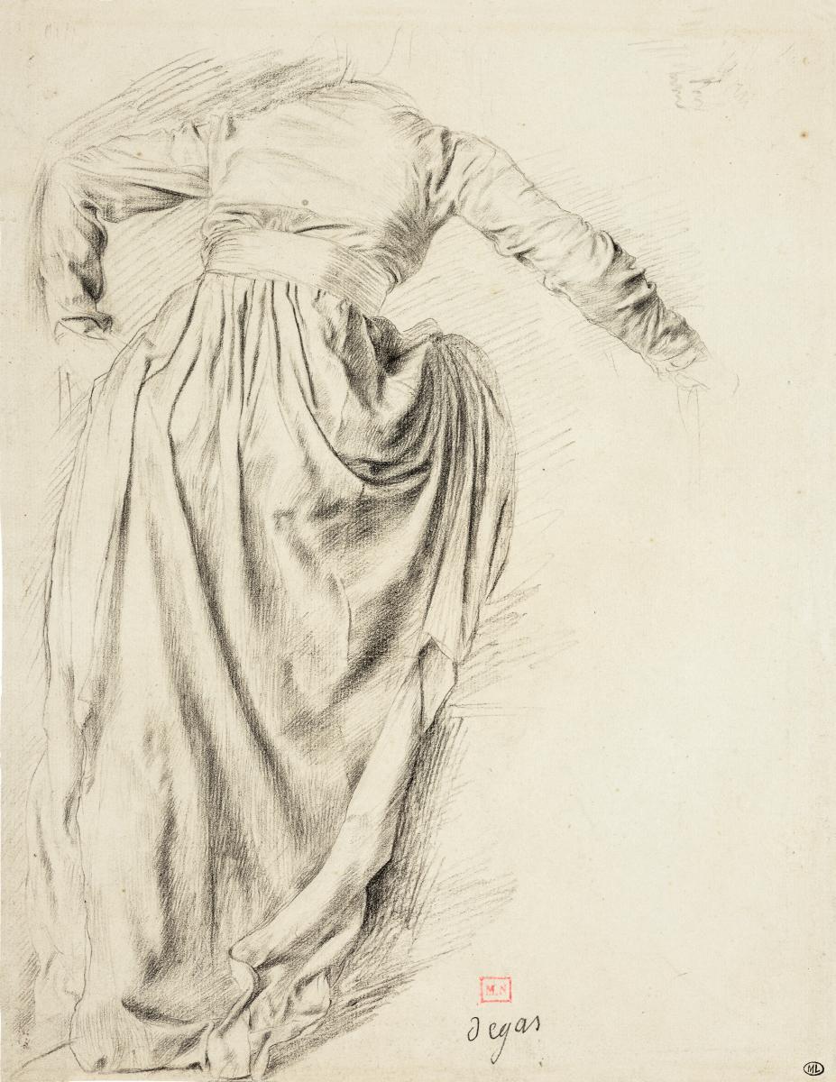 Étude de draperie d'une femme de dos, montant dans un char, étude pour Sémiramis construisant Babylone