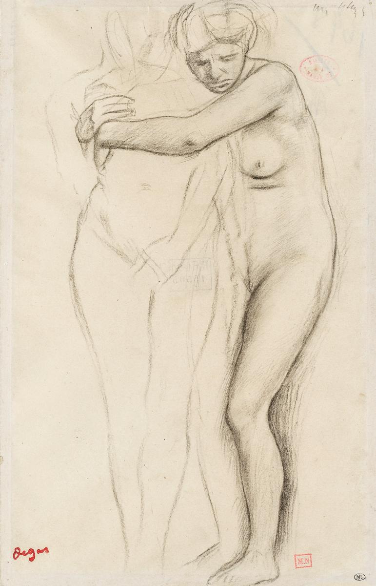 Femme nue, enlaçant une figure à sa droite, étude pour Scène de guerre au Moyen Âge, dit à tort Les Malheurs de la ville d'Orléans