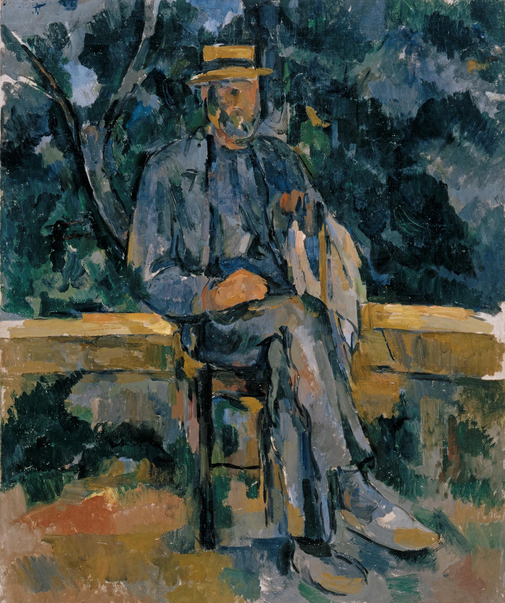 Ce travail est un bon exemple du style de dernières années de l'artiste, quand le reste, arrangement formel des années précédentes a commencé à se désintégrer, la surface de l'image est devenue plus agitée et les couleurs plus lumineux. Se efforçant de représenter la structure intérieure des choses, Cézanne fait forme et la couleur inséparables et ses compositions est devenu plus architecturale. Voici la verticalité du chiffre contraste avec le marqués horizontale formée par le parapet de l'ocre et les patchs horizontales du chapeau. En outre, les coups de pinceau, transparentes géométriques appliquées aux huiles grandement dilué façonnent progressivement la surface de l'image et de briser l'image dans une série continue de petits avions de couleur. Le chiffre, qui semble inachevée, est intégré dans un fond flou de la végétation, peut-être un symbole de la façon dont il est parfaitement en phase avec le réglage. Comme indiqué dans le catalogue raisonné de John Rewald, Cézanne "n'a suivi aucun plan préconçu de travail, de sorte que les sections essentielles, telles que les caractéristiques du modèle, pourraient être laissées vague ou, plutôt, pourrait être pris en charge dans une occasion plus tard (qui pourraient ne jamais se produire). "en outre, comme dans d'autres ?uvres de la dernière période de l'artiste, certaines zones de la toile ont délibérément été laissé à nu, faisant partie de la composition. Cézanne, rejetant l'idée traditionnelle d'un travail fini, embrassé la notion de l'inachevé, qui a continué à jouir tant d'influence dans tout l'art du XXe siècle.
