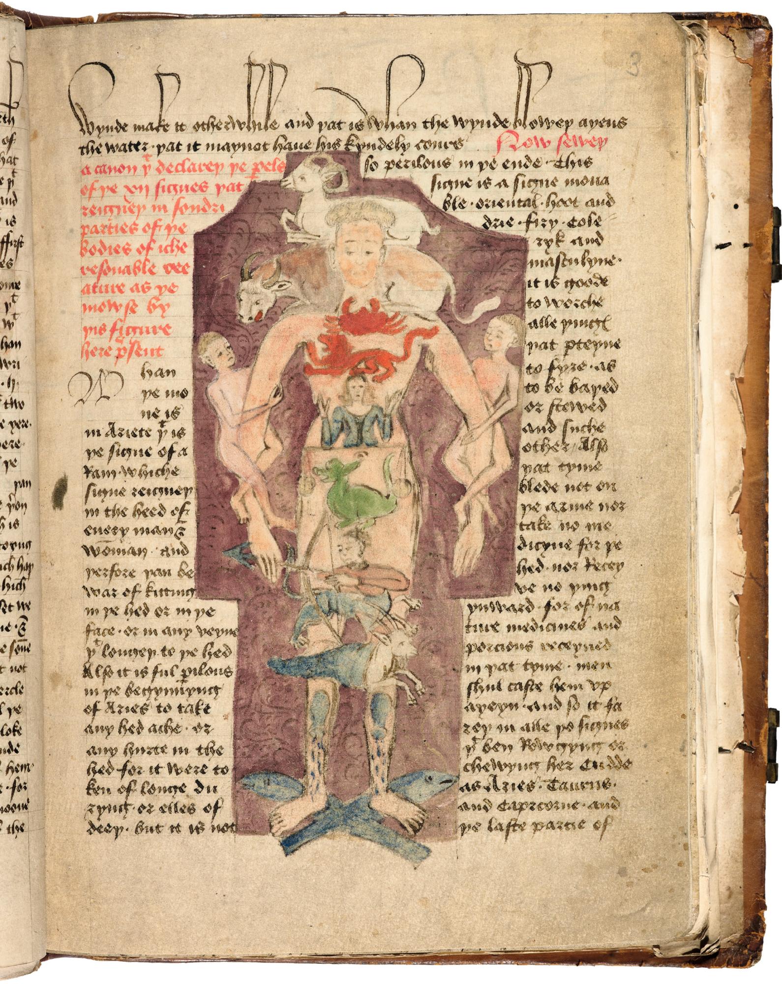 "Zodiac man" for astrological medicine, in John Somer, Kalendarium,