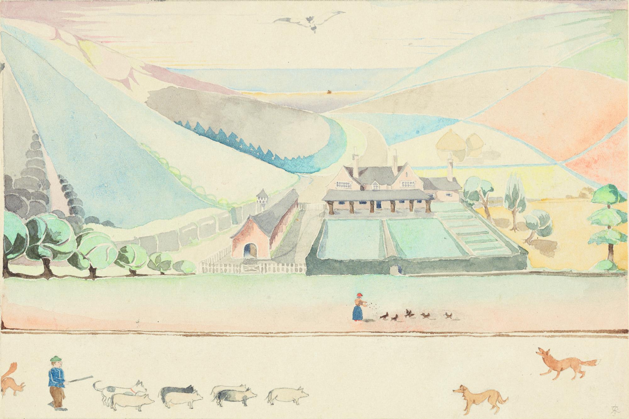 In 1925, whilst on holiday in Filey, Tolkien told his three young sons the tale of Rover, a boisterous, young puppy who was turned into a toy after biting a passing wizard. Two years later Tolkien drew this illustration for his youngest son, Christopher. The story, which became Roverandom, was published posthumously in 1998 accompanied by Tolkien's illustrations.