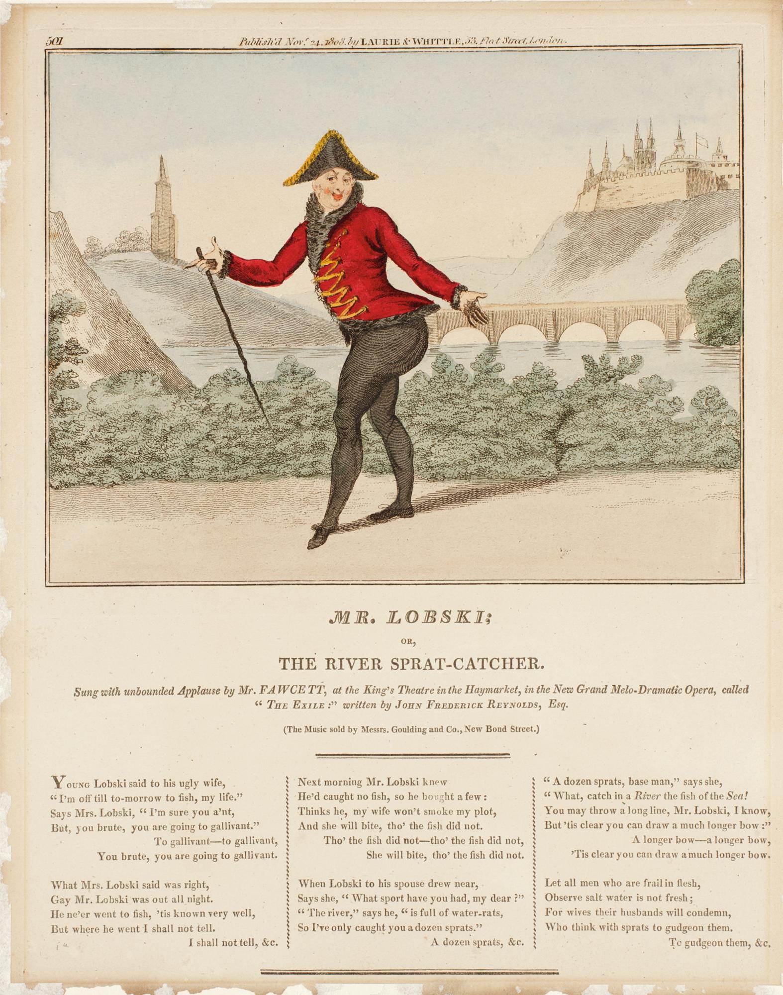 John Fawcett performing the comic song, 'Mr. Lobski; or, the River-Sprat Catcher', from The Exile
