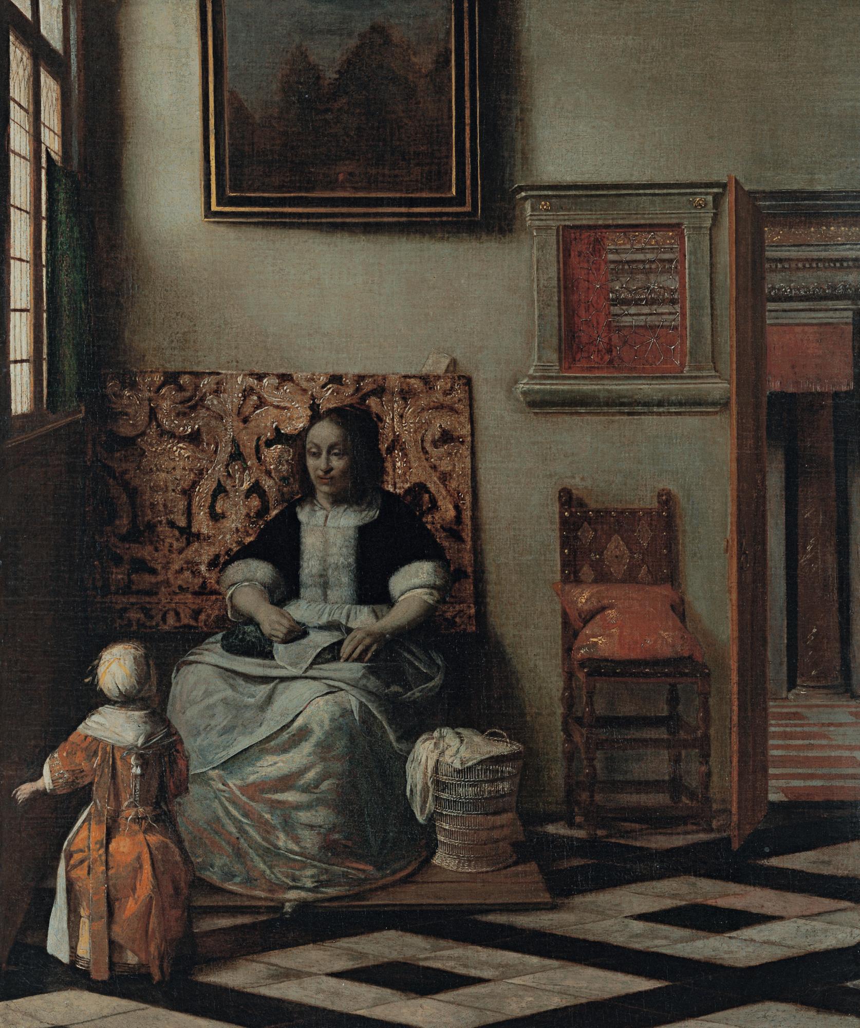 Museoteca - Interior with a Woman sewing and a Child, Hooch, Pieter Hendricksz de