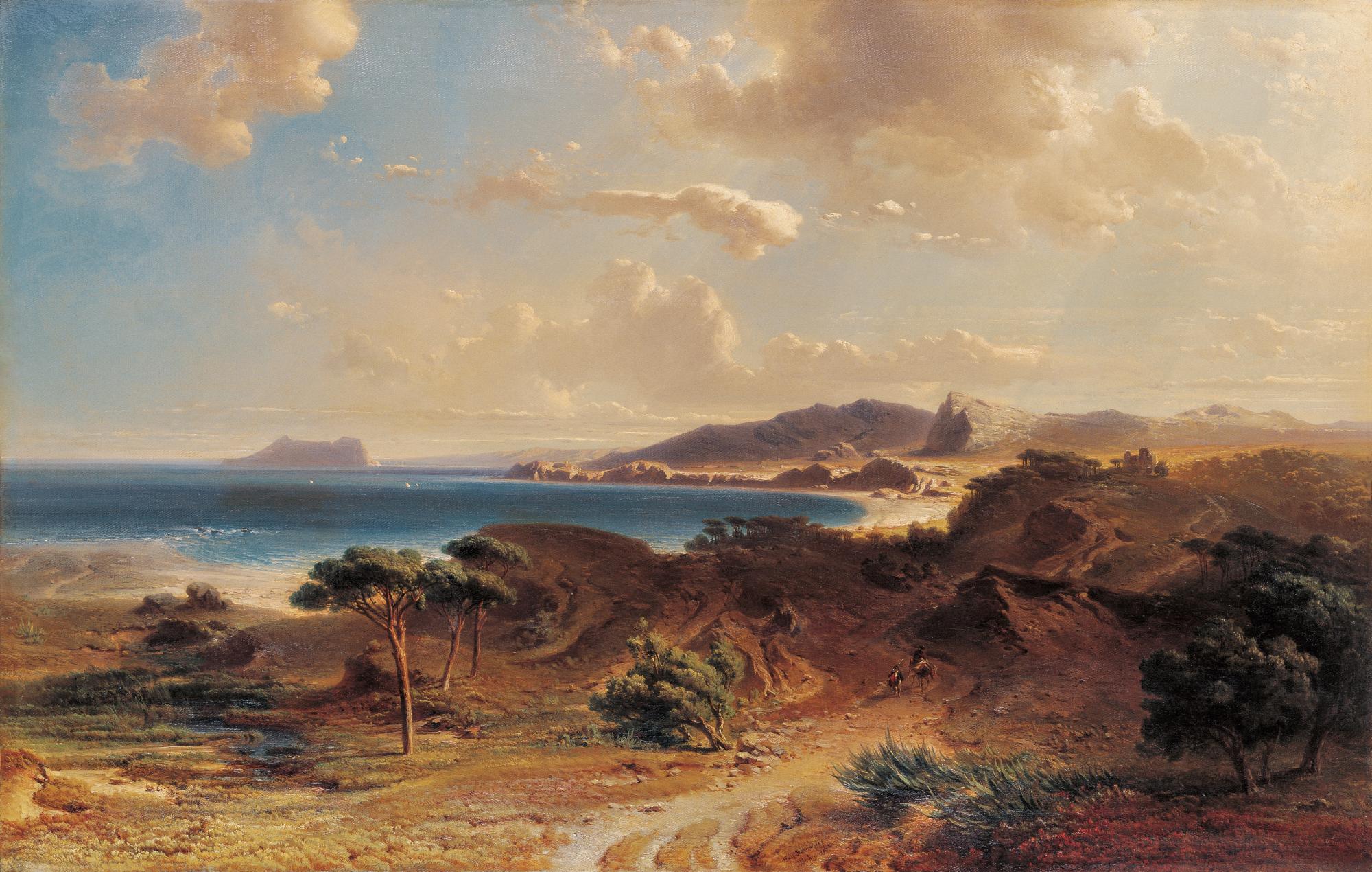 Museoteca - Playa de Estepona con la vista del Peñón de Gibraltar, 1855, Fritz Bamberger