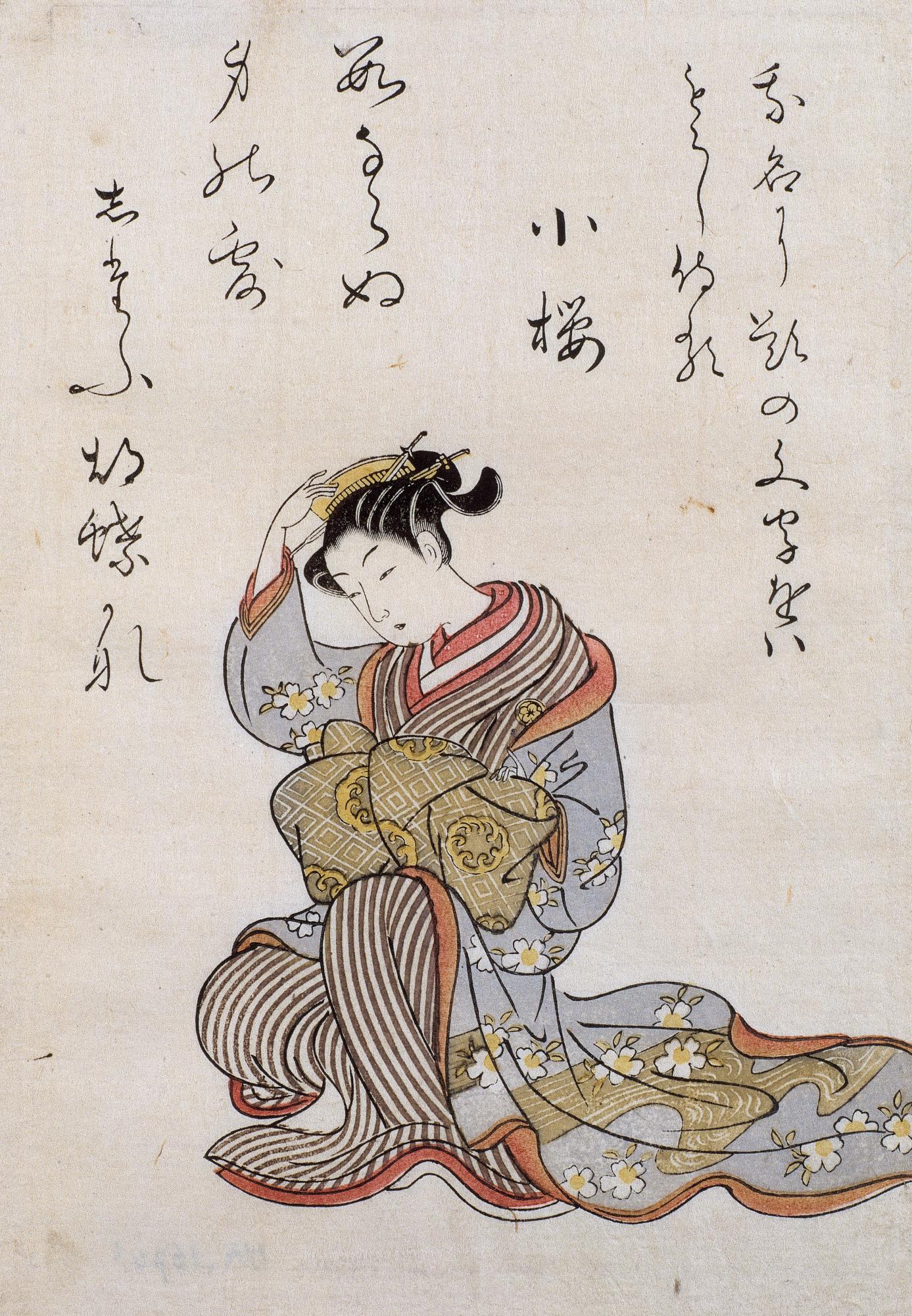 Museoteca - Jeune femme se fixant un peigne dans les cheveux, Haronobu, Suzuki