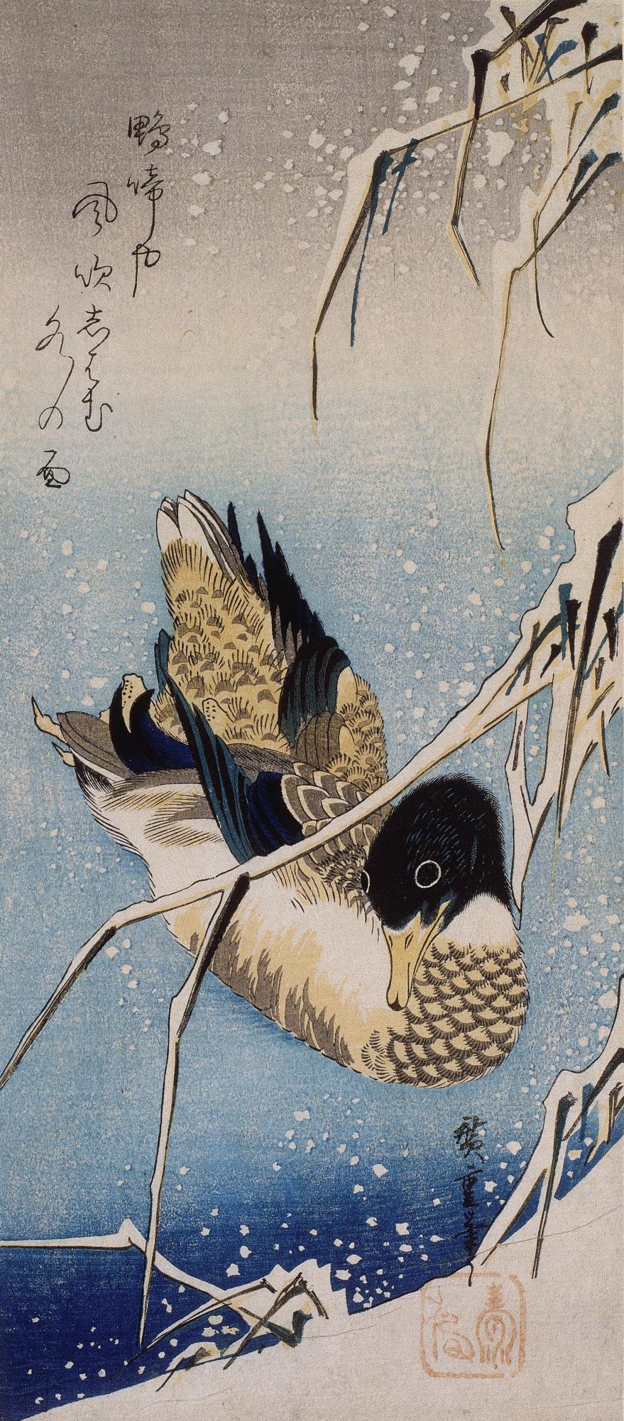Museoteca - Canard et roseaux sous la neige, Hiroshige, Utagawa