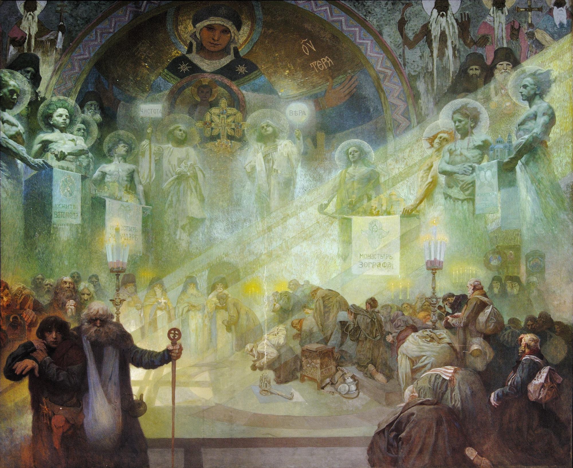 Museoteca - 'The Slav Epic' cycle No.17: The Holy Mount Athos , Mucha, Alphonse