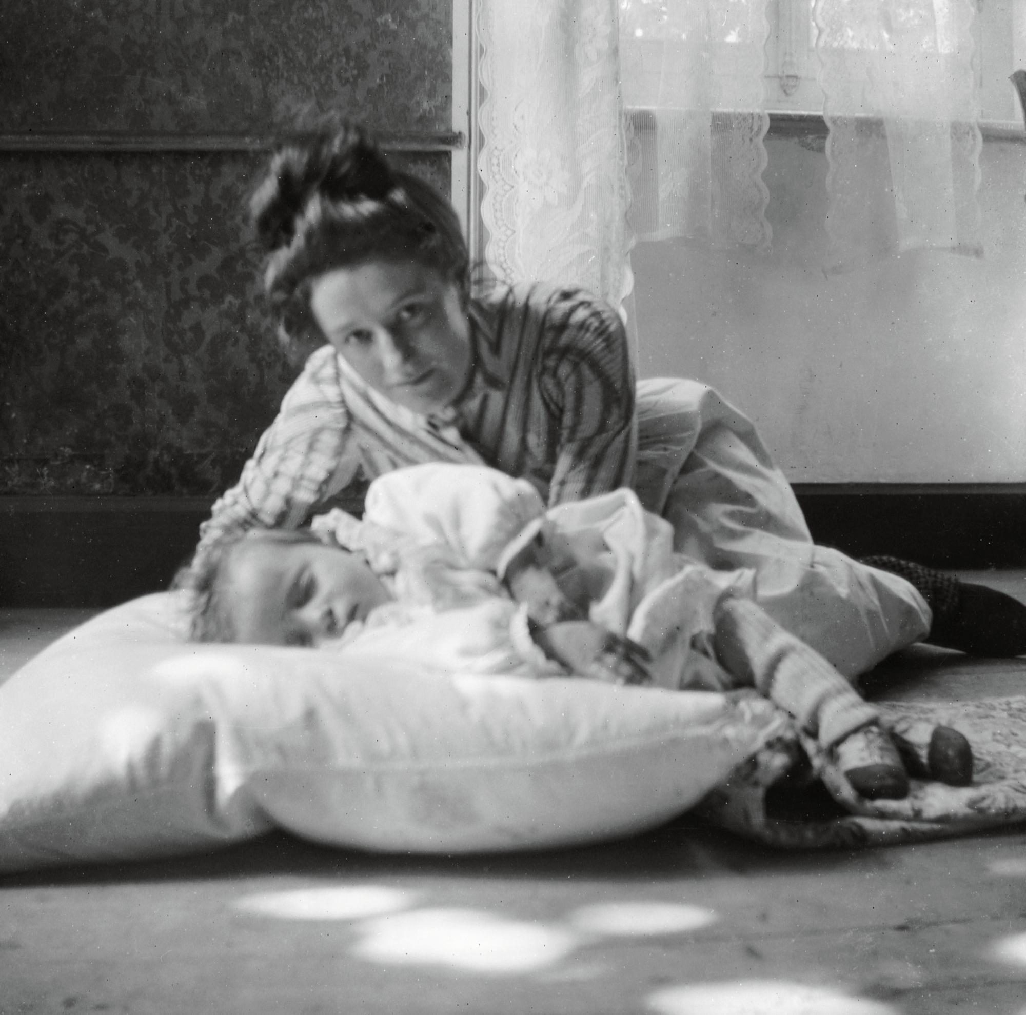 Museoteca - Anne-Marie endormie sur un oreiller avec Gabrielle, Denis, Maurice