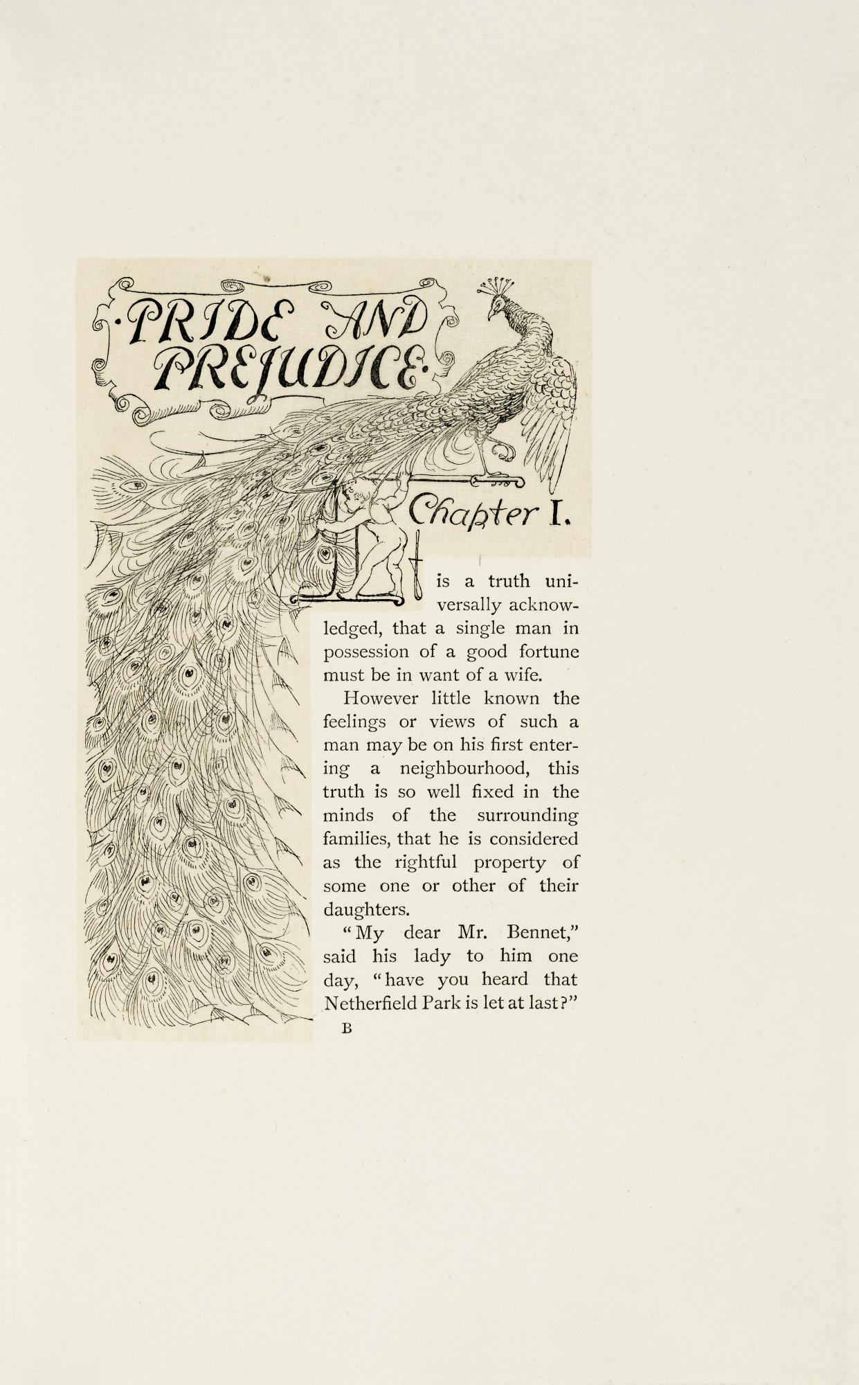 Museoteca - The opening page of a Victorian issue of Pride and Prejudice, by Jane Austen, with illustrations by Hugh Thomson, London, 1894, Jane Austen